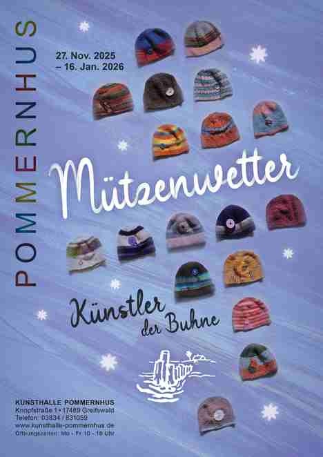 Mützen sorgen für wohliges Wärmegefühl, Kunst für ein wohliges Gefühl der Seele! In dieser Ausstellung präsentieren Künstler der Gruppe „Die Buhne“ eine große Spannbreite an Formaten, Themen und Techniken.